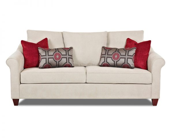 The Diego collection has sloped, petite, rolled arms that are draped with welt. Features three, large back cushions. Two square arm pillows and two rectangular kidney pillows provide color and texture. Tapered, wooden block legs. This collection is available in a sofa, loveseat, oversized chair and ottoman.